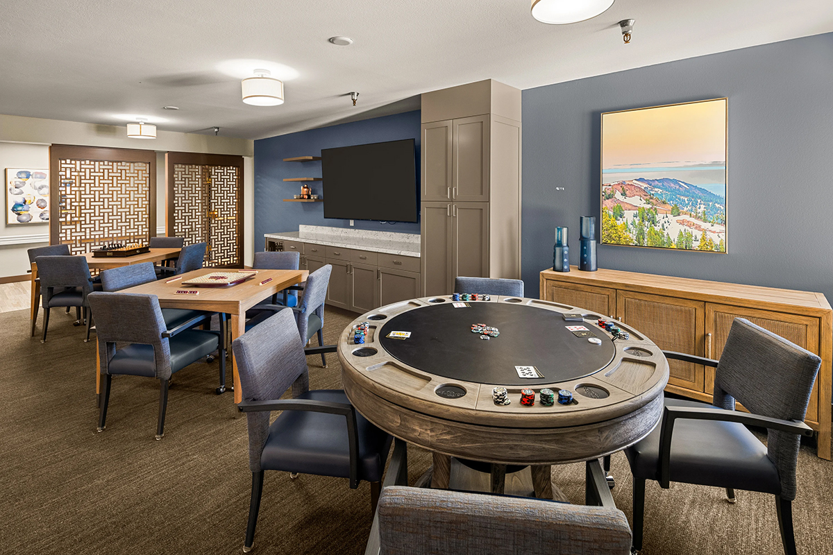 Library spaces, lounges, a game room, and a large-screen TV lounge provide additional places to unwind or pursue hobbies. Whether you’re reading a book, playing cards with friends, or watching a favorite movie, these shared spaces enhance daily life at Hilltop Estates.