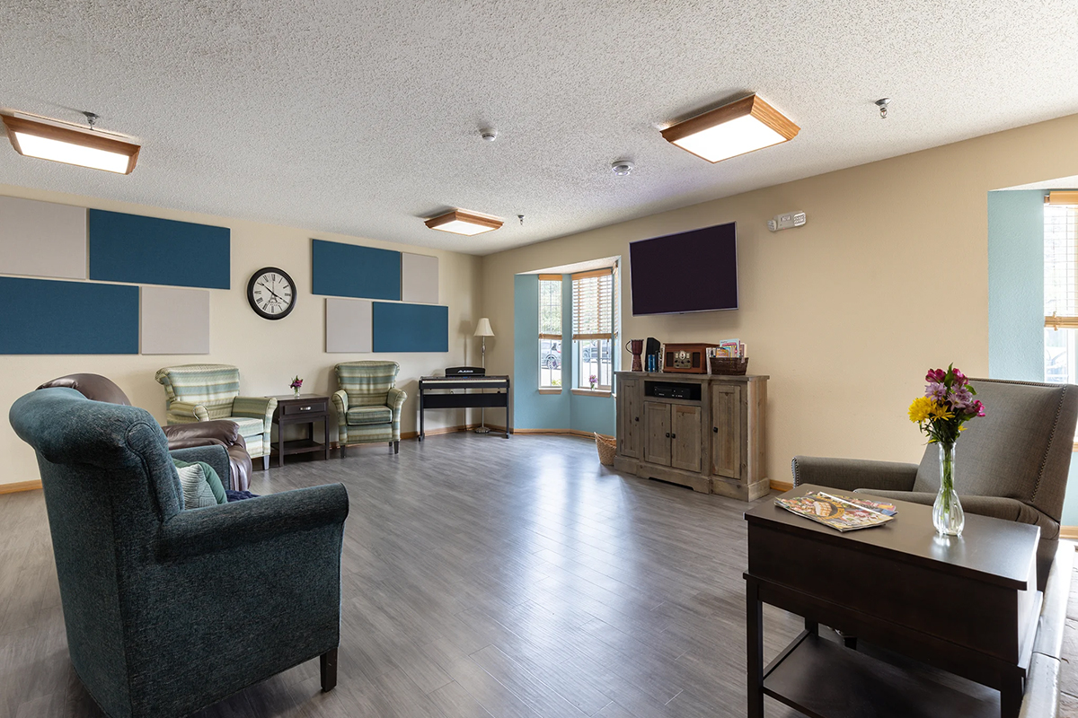 The memory care neighborhood at Prairie Meadows is designed specifically for individuals living with Alzheimer’s disease and other forms of dementia. The environment emphasizes safety, clarity, and consistency, helping residents feel more secure as they move through their day.