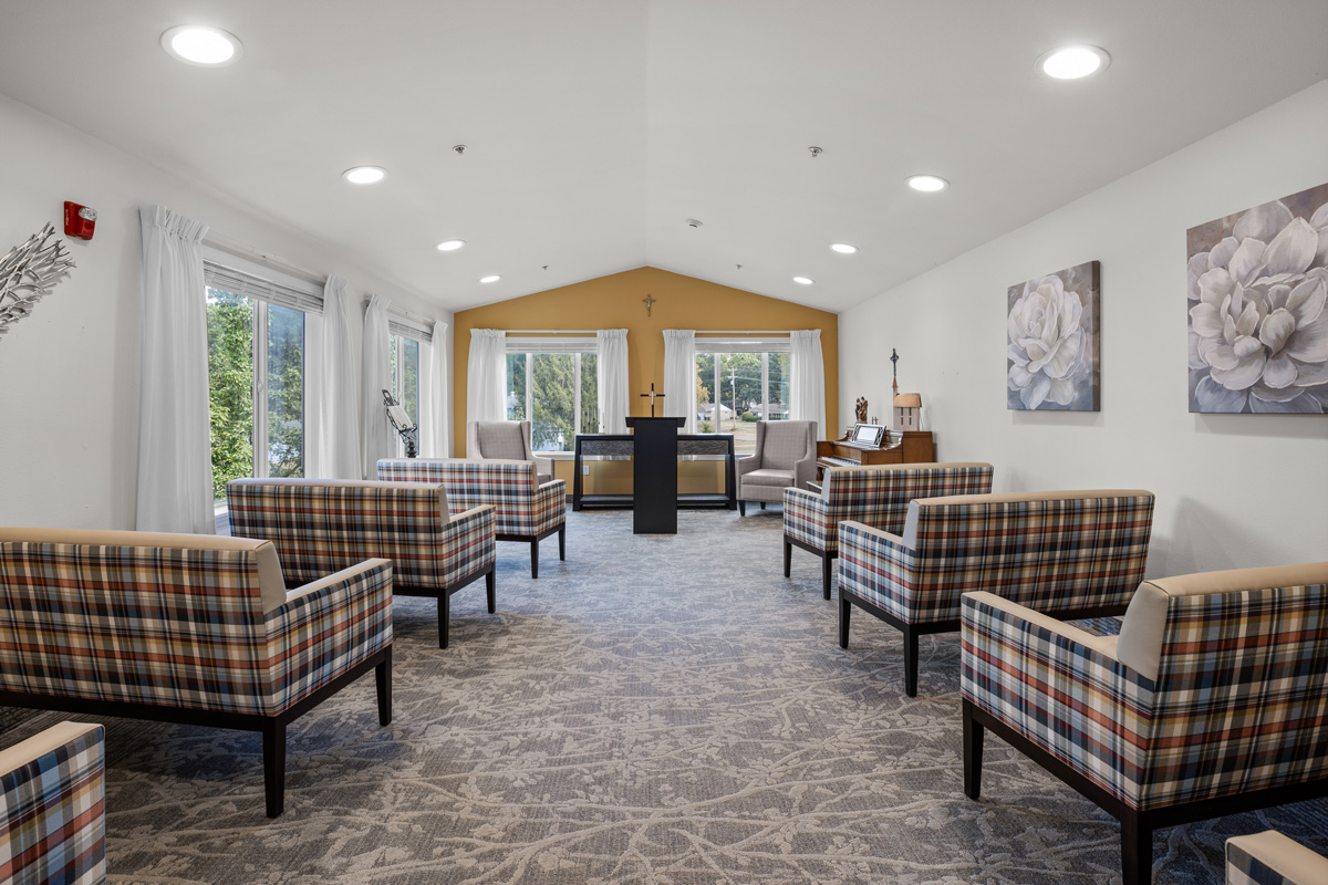 Enjoy spiritual gatherings in the in-house chapel, scheduled exercise classes designed for seniors, or simply a peaceful walk on scenic paths. Whatever your interests, the community fosters engagement that enhances physical, emotional, and social well-being.