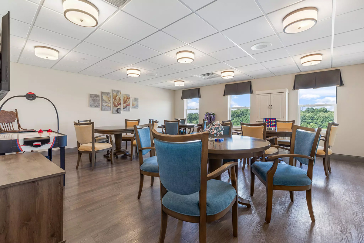 Residents can choose from thoughtfully designed floor plans that maximize both privacy and convenience. Options include private apartments with modern finishes, easy-to-navigate layouts, and plenty of natural light. Whether a resident is in assisted living or memory care, the living spaces are designed to feel like home.
